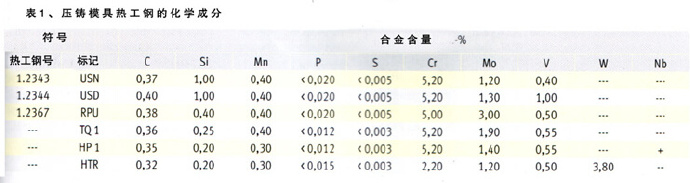 表1,壓鑄模具熱工鋼的化學成分